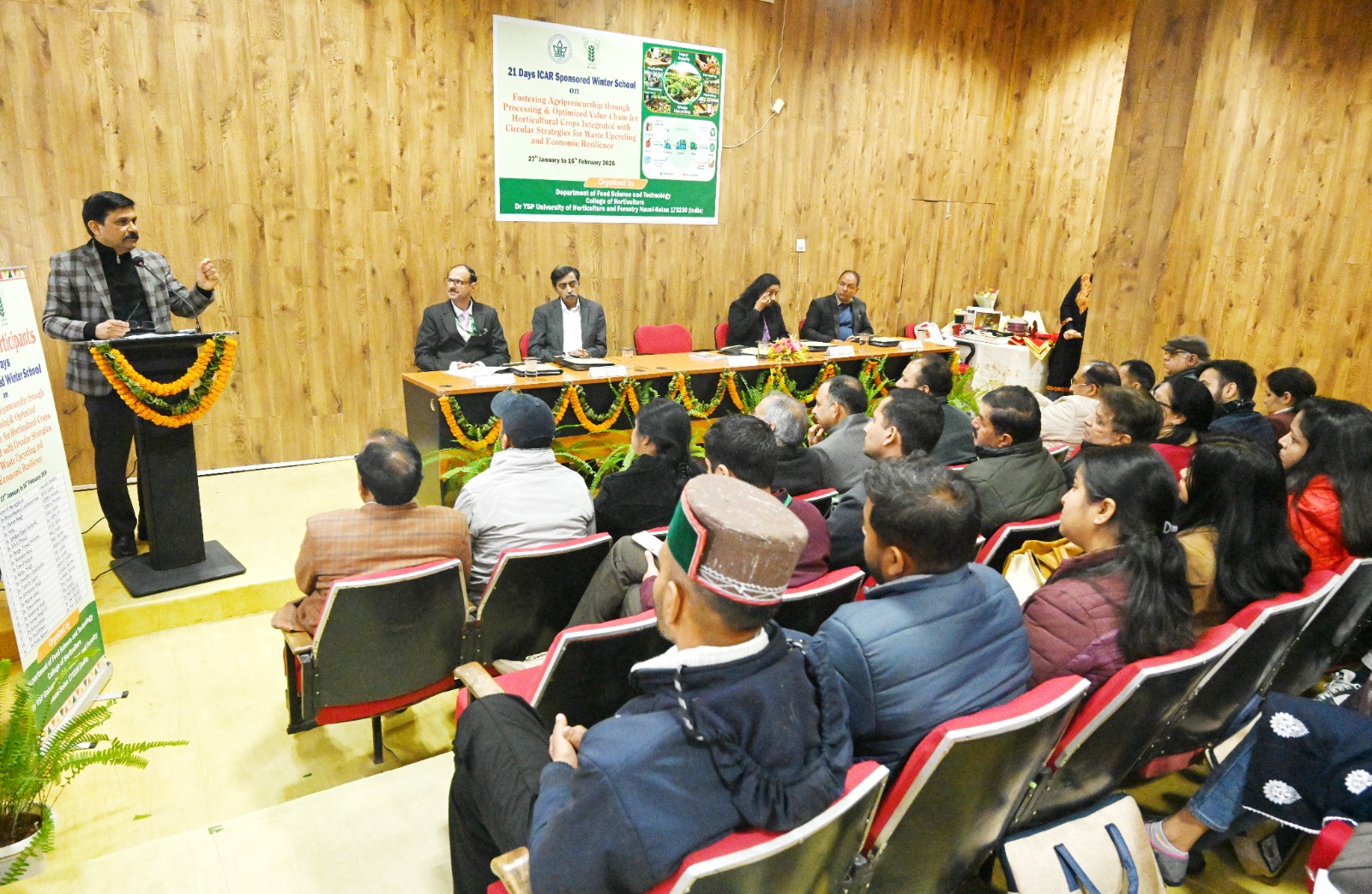 भारतीय कृषि अनुसंधान परिषद द्वारा प्रायोजित ‘अनुकूलित मूल्य श्रृंखला के माध्यम से बागवानी फसलों में कृषि उद्यमिता को बढ़ावा देना,’ विषय पर आयोजित 21 दिवसीय विंटर स्कूल का आज डॉ. यशवंत सिंह परमार औद्यानिकी एवं वानिकी विश्वविद्यालय, नौणी में शुभारंभ हुआ। इस प्रशिक्षण कार्यक्रम का आयोजन विश्वविद्यालय के खाद्य विज्ञान एवं प्रौद्योगिकी विभाग द्वारा किया