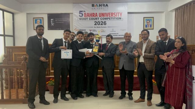 बाहरा विश्वविद्यालय में आयोजित 5 वीं राष्ट्रीय मूट कोर्ट प्रतियोगिता का ग्रैंड फिनाले अत्यंत उत्साह, गरिमा और विधिक ऊर्जा के साथ संपन्न हुआ। इस अवसर पर मुख्य अतिथि के रूप में हिमाचल प्रदेश उच्च न्यायालय के माननीय न्यायाधीश न्यायमूर्ति सुशील कुकरेजा की उपस्थिति ने कार्यक्रम की शोभा बढ़ाई।