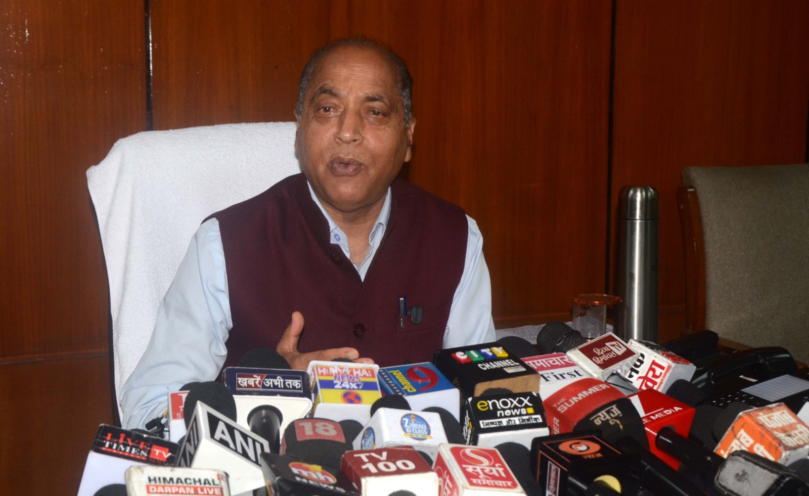 अपने विधानसभा स्थित कार्यालय में पत्रकार वार्ता को संबोधित करते हुए नेता प्रतिपक्ष जयराम ठाकुर ने कहा कि पुलिस भर्ती मामले में भारी पैमाने पर गड़बड़ी की शिकायत मिल रही है।